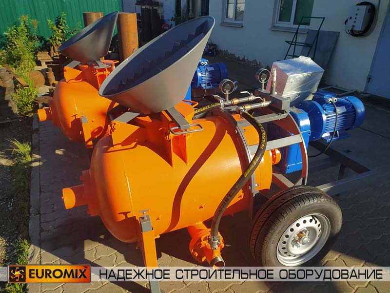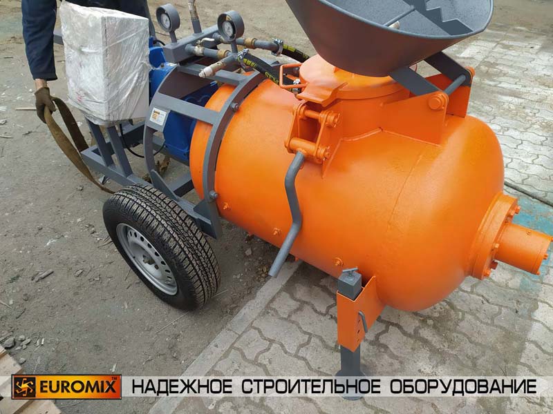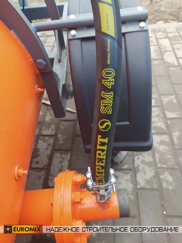 В город Ташкент Республики Узбекистан отгружен смеситель-пневмонагнетатель EUROMIX 300 TRAIL в комплекте с гасителем и рукавами подачи SEMPERIT SM 40 D65.