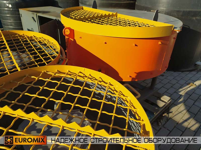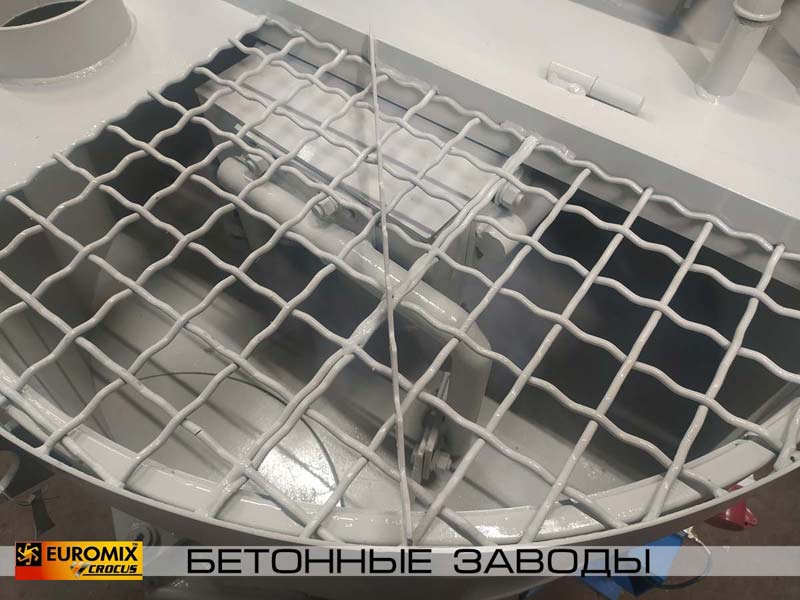 На собственной производственной базе в Туле перед отгрузкой проведена контрольная сборка бетоносмесительного узла стационарного бетонного завода EUROMIX CROCUS 150/3750.4.30. Применяемый бетоносмеситель: SDMIX KTSA 3750/2500. Материал футеровки (брони) и скребков – Ni-Hard Cast Iron (белый чугун, легированный хромом). Толщина брони чаши – 20 мм, торец – 15 мм.