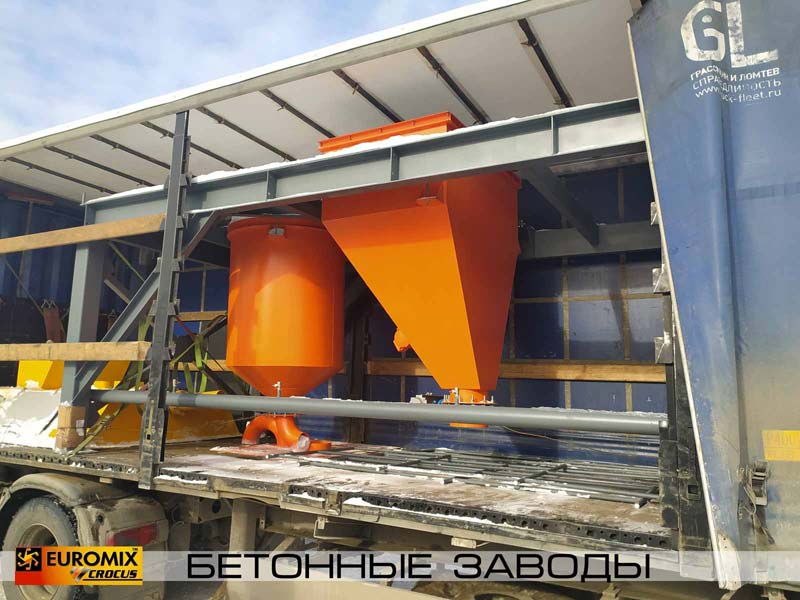 В Серпухов отгружена нижняя часть модуля хранения инертных материалов с весовым ленточным дозатором под стационарный бетонный завод EUROMIX CROCUS 150/3750.4.30 (4 бункера по 30 м³).