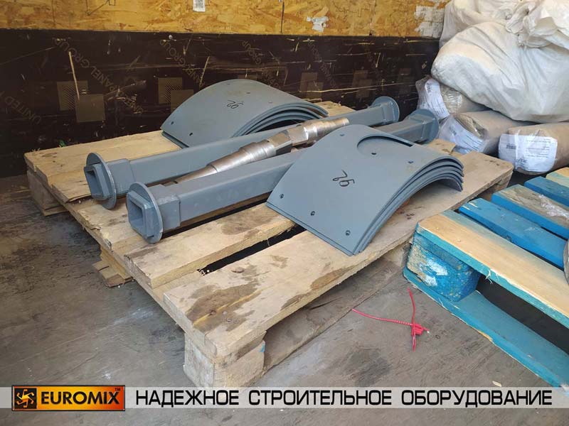 Клиенту из Московской области для проведения текущего ремонта бетоносмесителя EUROMIX 600.750 отгружен активатор, лопатки и стойки, а также комплект брони из износостойкой стали HARDOX 500 (Швеция).