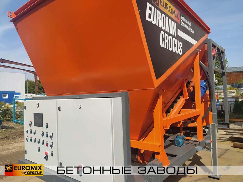 Фотообзор мобильного мини-завода EUROMIX CROCUS 5/200. Это самый маленький агрегат из линейки бетонных заводов EUROMIX CROCUS. Завод выполнен по индивидуальной цветовой схеме заказчика.