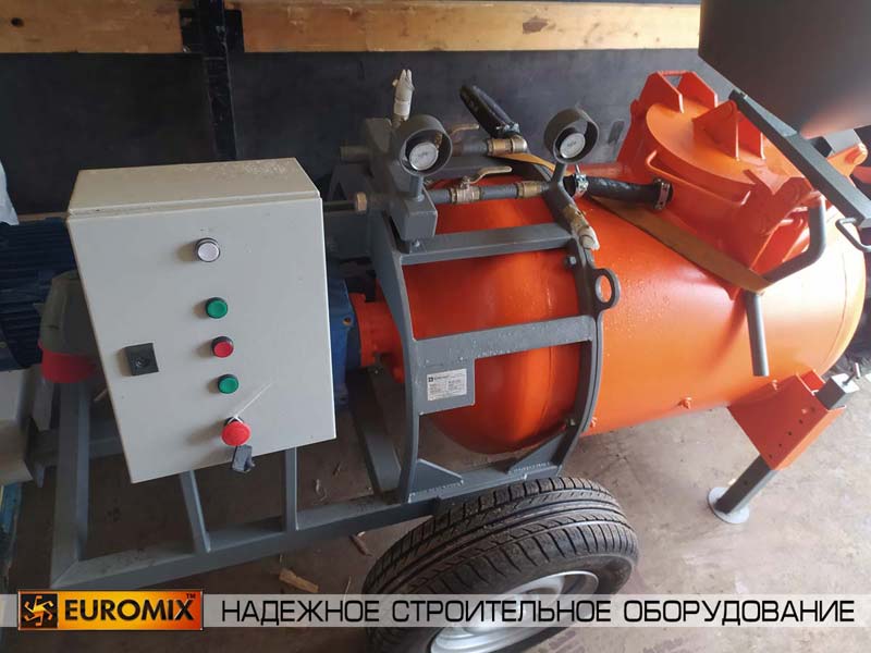 В город Смоленск осуществлена поставка смесителя-пневмонагнетателя EUROMIX 300 TRAIL. Агрегат будет использоваться для обустройства полусухой стяжки пола.
