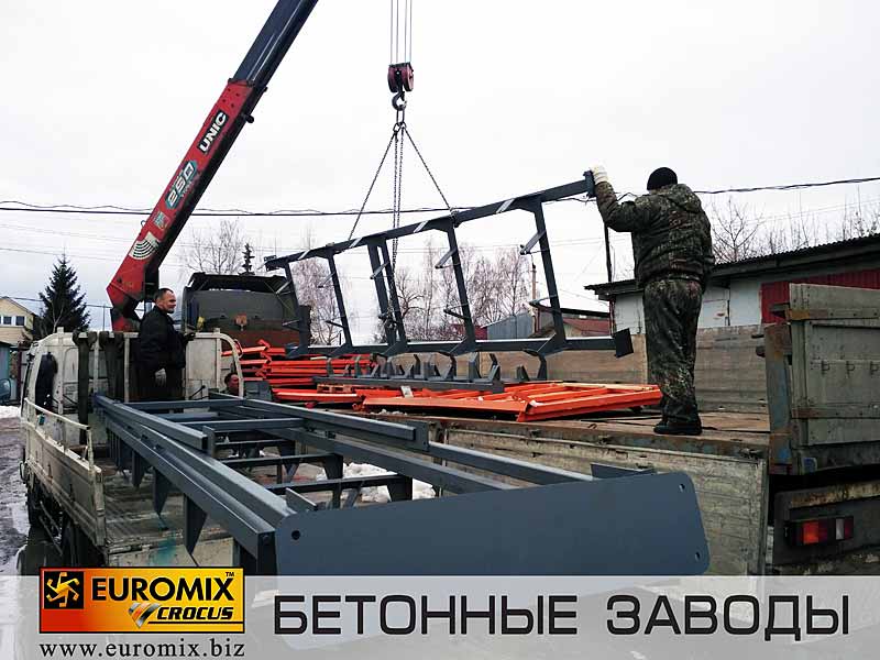 Отгрузка комплектующих для бетонного завода EUROMIX CROCUS COMPACT 1 30 для клиента из г.Воскресенск Московской области. Оборудование используется при производстве ЖБИ изделий.