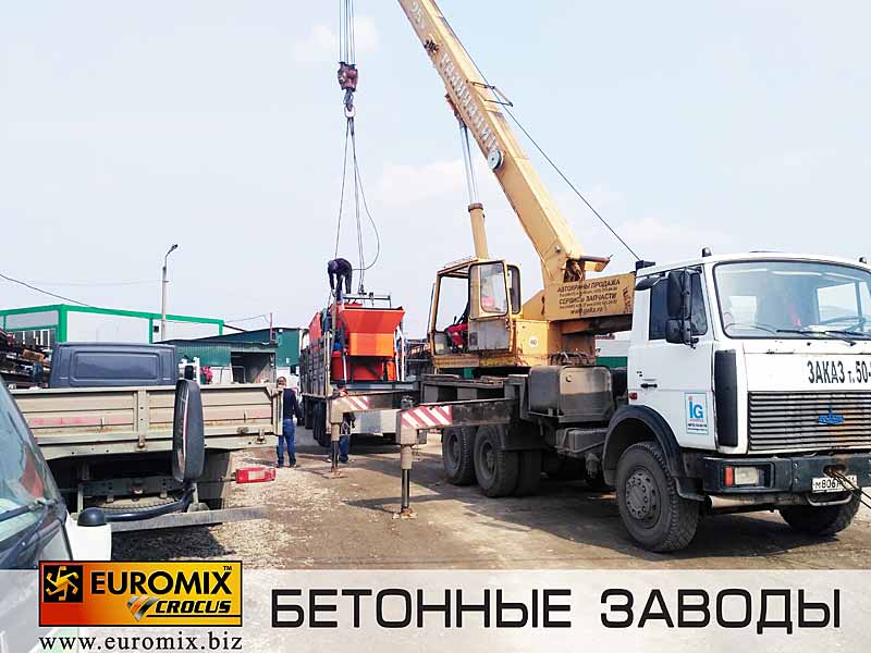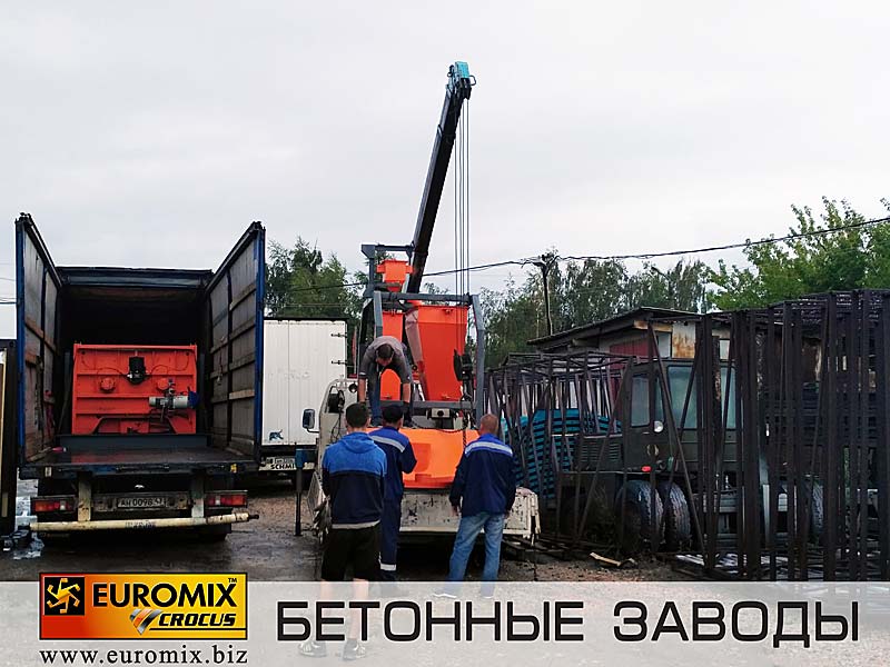 Отгрузка бетонного завода EUROMIX CROCUS 30/750.4.5 COMPACT 2 СКИП. Бетонный завод будет эксплуатироваться в Орехово-Зуево, МО. Завод приобретен клиентом для производства товарного бетона.