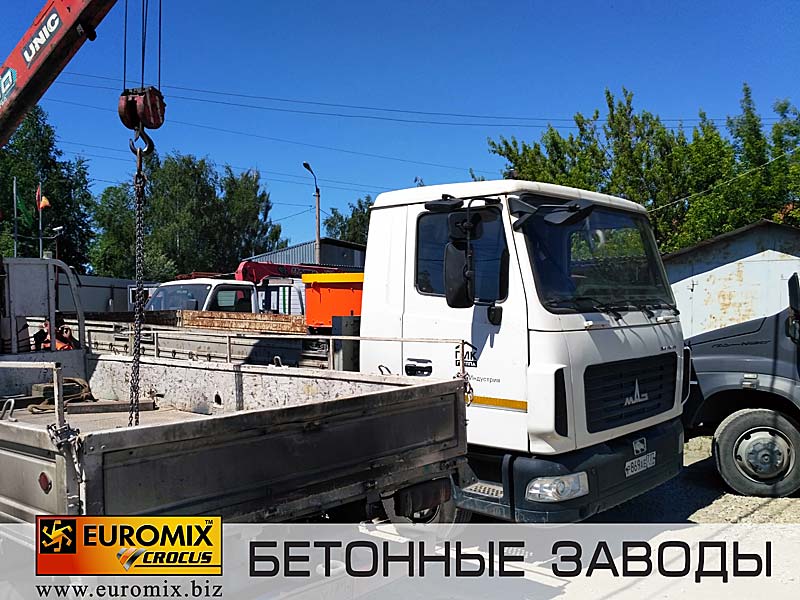 Отгрузка мобильного бетонного завода EUROMIX CROCUS 8/300 в комплекте с винтовым конвейером и станцией растаривания "Биг-Бэгов" СР-500 эконом, для заказчика из Амурской области. Бетонный завод будет использоваться заказчиком при строительстве новых животноводческих корпусов.